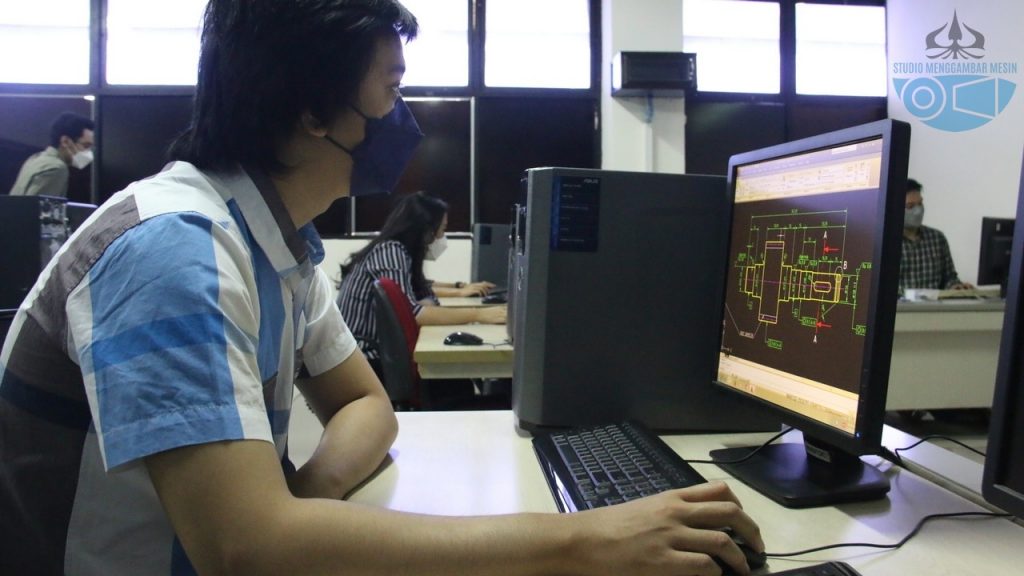 The module is an assembled workpiece consisting of 10 to 15 components. Assembled objects are broken down to be measured directly by the practitioner using various measuring tools such as a ruler, caliper, vernier caliper, micrometer screw, and others. Sketches of single components and assemblies are made first on graph paper (mm block paper). The results of the sketches on graph paper that have been checked & approved by the assistant are then drawn on A1 white paper or drawn using CAD software.